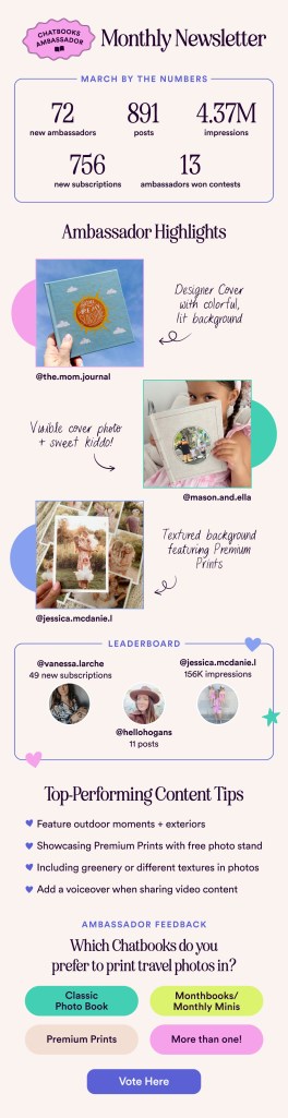 Monthly newsletter to foster loyalty within community and drive friendly competition among fellow influencers.